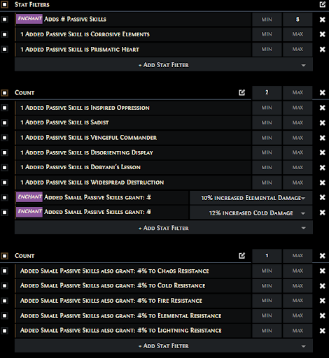 Added whether a passive was shown as a ImplicitEnchant a Explicit aka rollable mod or both. Cluster Jewels can be crafted using all of the same methods that youre used to using with other Path of Exile items. The 10 multi is okay but being able to turn any enemy regen modifier into a non-issue is great when it shows up.